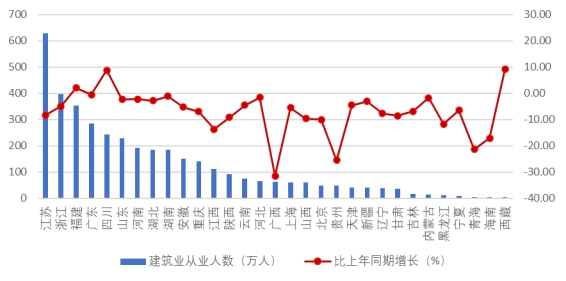 圖 4 2024 年上半年各地區建筑業從業人數及其增長情況