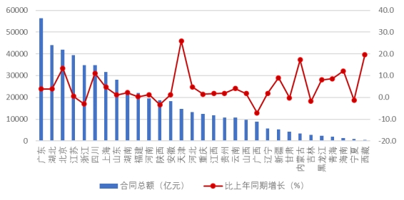 圖 6 2024 年上半年各地區建筑業企業合同總額及其增長情況