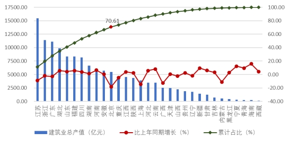 圖1 2025 年上半年各地區建筑業總產值及其增長情況