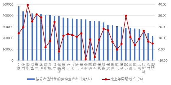圖5 2025 年上半年各地區建筑業勞動生產率及其增長情況