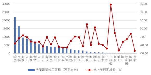 圖9 2025 年上半年各地區建筑業企業房屋竣工面積及其增長情況